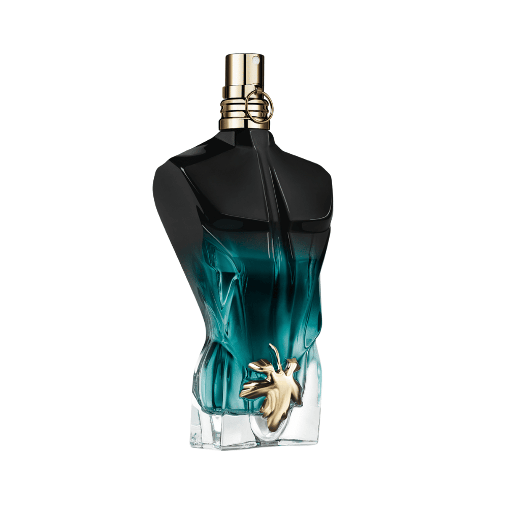 El frasco de Le Beau Le Parfum mantiene el torso masculino característico de la línea, ahora en un degradado verde profundo hacia el negro. La clásica hoja dorada en la zona central es símbolo de deseo, erotismo y magnetismo. Un diseño provocador y artístico, típico de Jean Paul Gaultier.