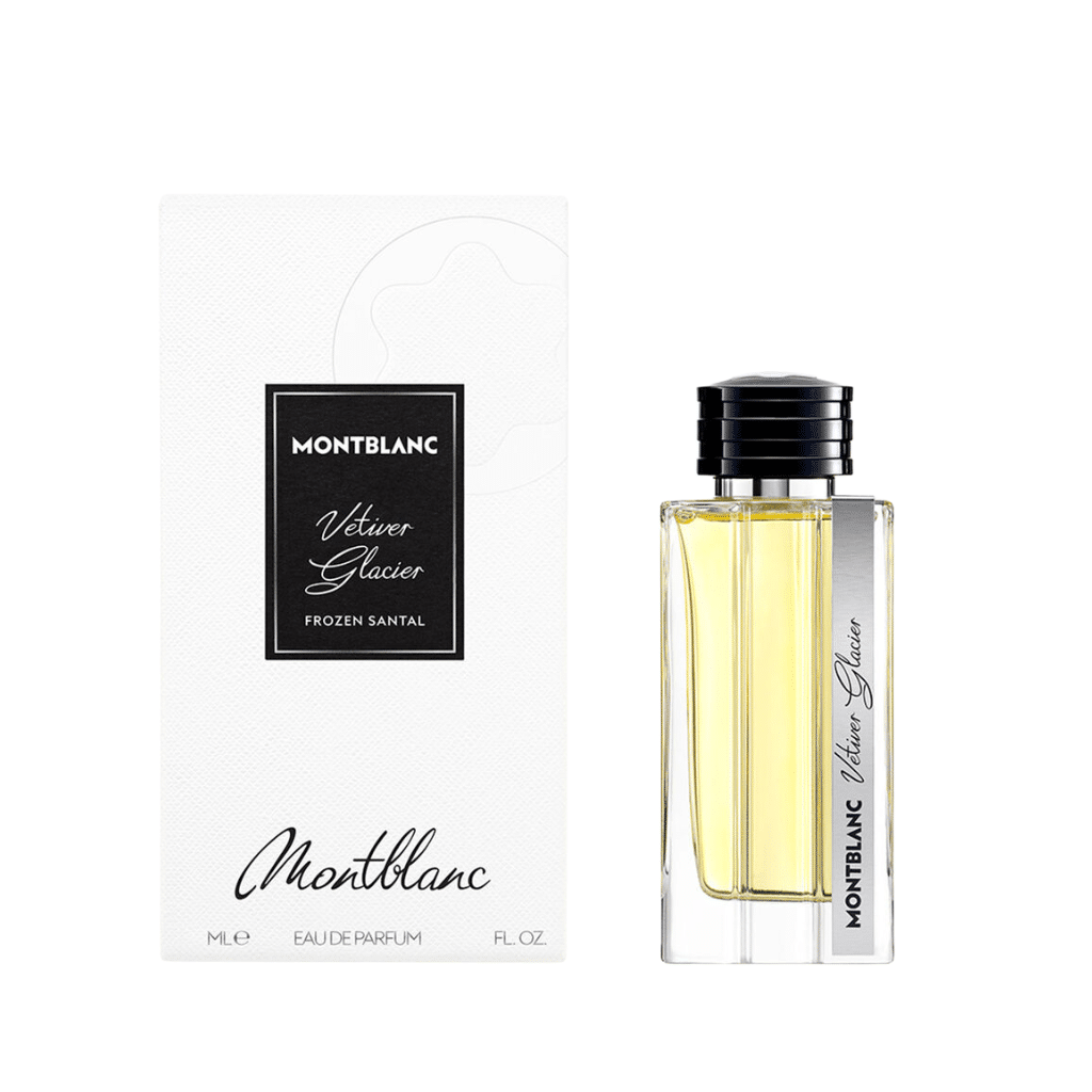 La maison Montblanc, símbolo de lujo discreto y excelencia en diseño, presentó en 2024 Vetiver Glacier Frozen Santal Montblanc como parte de una colección inspirada en paisajes alpinos. La fragancia busca capturar la pureza cristalina de un glaciar, el frescor del aire limpio de montaña y el abrazo cálido de la madera noble.